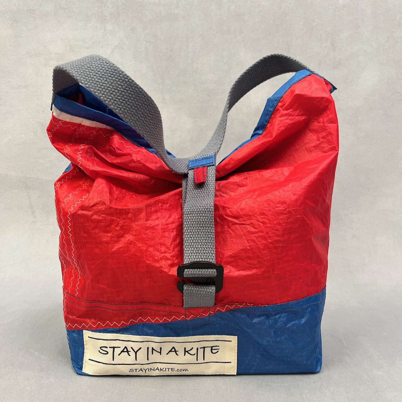 Fรผr diese farbenfrohe und formschรถne Tasche recyceln wir ausschlieรlich die Segelflรคche, mit der der Kite in seinem frรผheren Leben den Wind einfing. Dieses Segeltuch ist phantastisch bedruckt in strahlend bunten Farben, so wie die โSurfer-Himmelโ vergangener Urlaube, die Du sicher mit einem Lรคcheln erinnerst.
