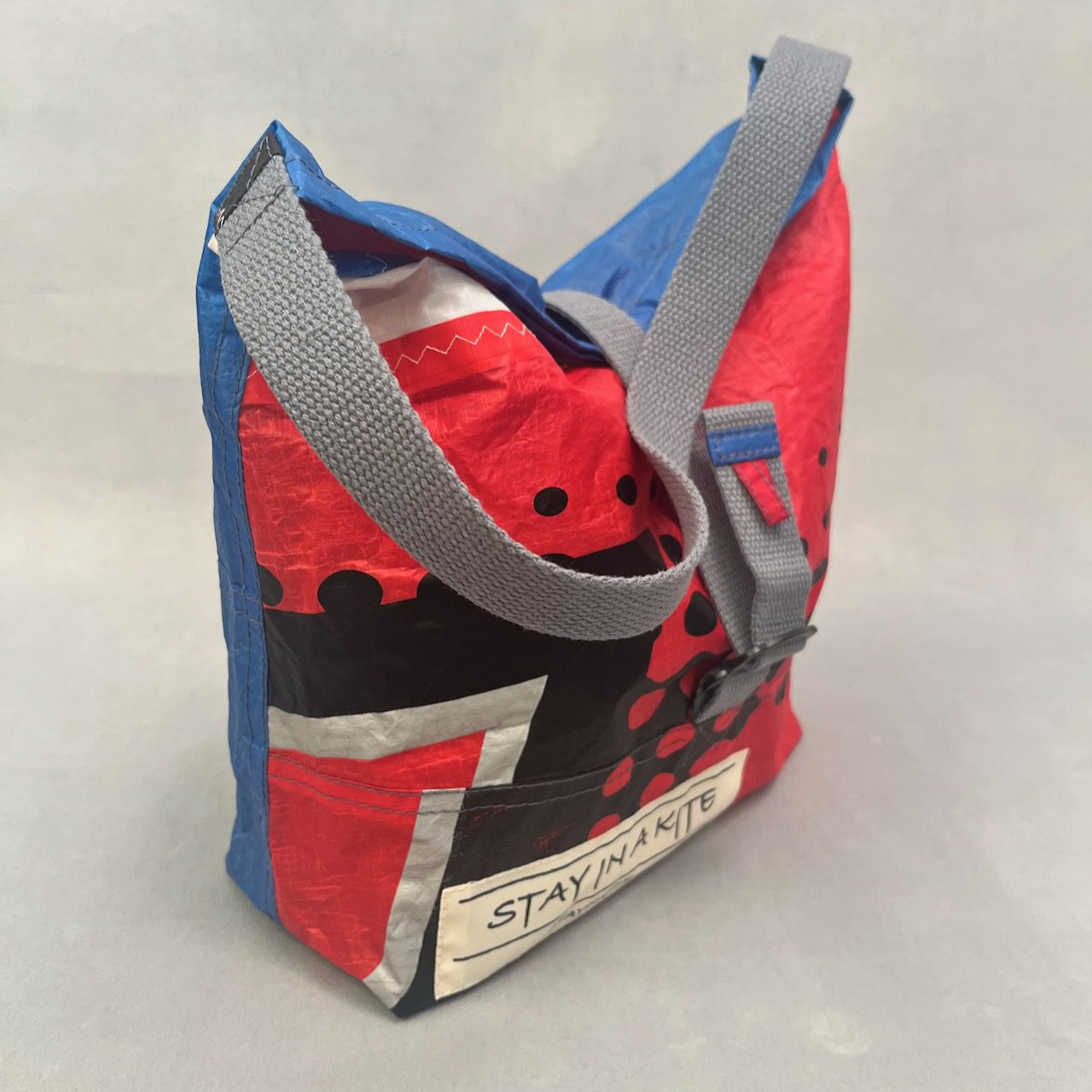 Fรผr diese farbenfrohe und formschรถne Tasche recyceln wir ausschlieรlich die Segelflรคche, mit der der Kite in seinem frรผheren Leben den Wind einfing. Dieses Segeltuch ist phantastisch bedruckt in strahlend bunten Farben, so wie die โSurfer-Himmelโ vergangener Urlaube, die Du sicher mit einem Lรคcheln erinnerst.