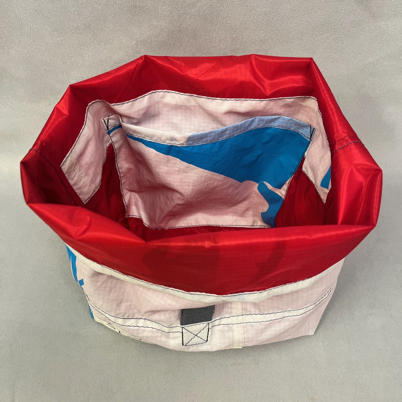 Fรผr diese farbenfrohe und formschรถne Tasche recyceln wir ausschlieรlich die Segelflรคche, mit der der Kite in seinem frรผheren Leben den Wind einfing. Dieses Segeltuch ist phantastisch bedruckt in strahlend bunten Farben, so wie die โSurfer-Himmelโ vergangener Urlaube, die Du sicher mit einem Lรคcheln erinnerst.