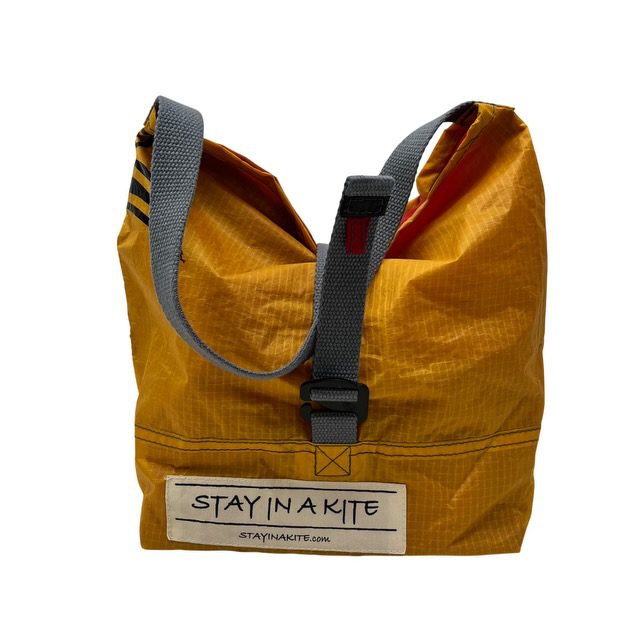 Vielseitig verwendbare, strapazierfรคhige und umweltfreundliche Upcycling Tasche aus gebrauchten Kite-Surf-Segeln. Diese nachhaltige und auรŸergewรถhnlich leichte Umhรคngetasche ist hervorragend als โ€žTasche in der Tascheโ€œ geeignet; mal ganz praktisch fรผr Dein aktuelles Strickprojekt oder fรผr Dein nasses Schwimmzeug, weil sie wasserabweisend ist .