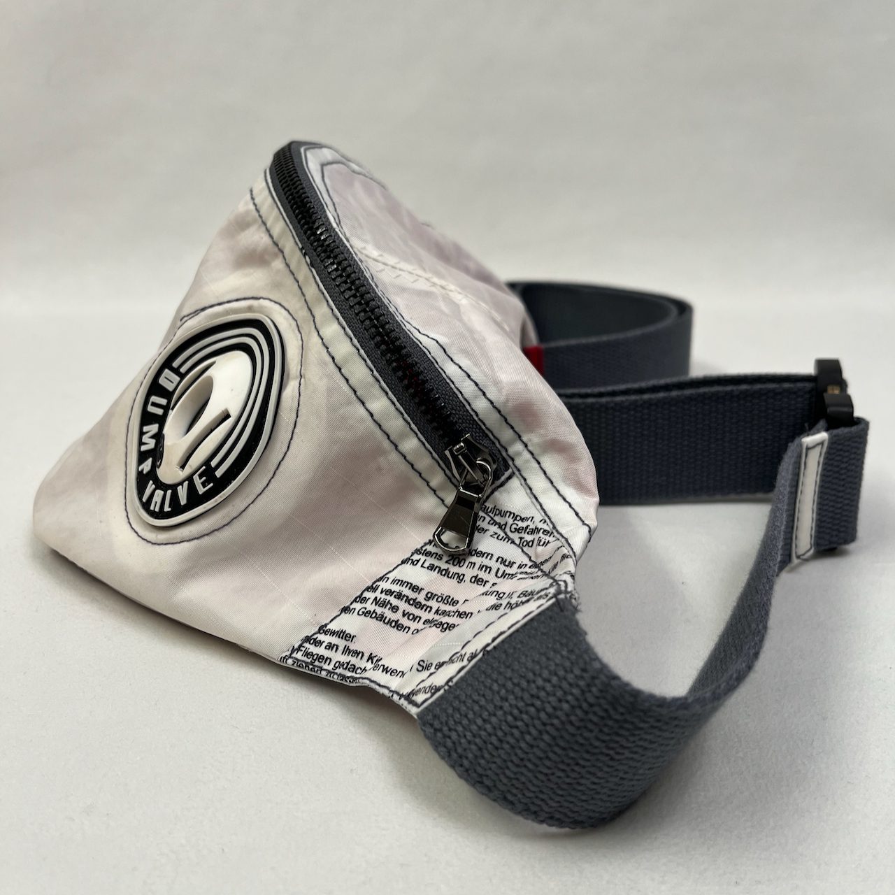 Ein echter Hingucker: Unsere individuelle, federleichte und abwaschbareย Bauchtascheย aus Upcycling-Kite-Surf-Segeln.ย Gerรคumiges Hauptfachย mit kleinemย Steckfรคchernย fรผr mehr รbersicht. Rรผckwรคrtig einย Reiรverschluss-Fach.ย Steckschlieรeย fรผr stufenloses Verstellen des Gurtbandes.