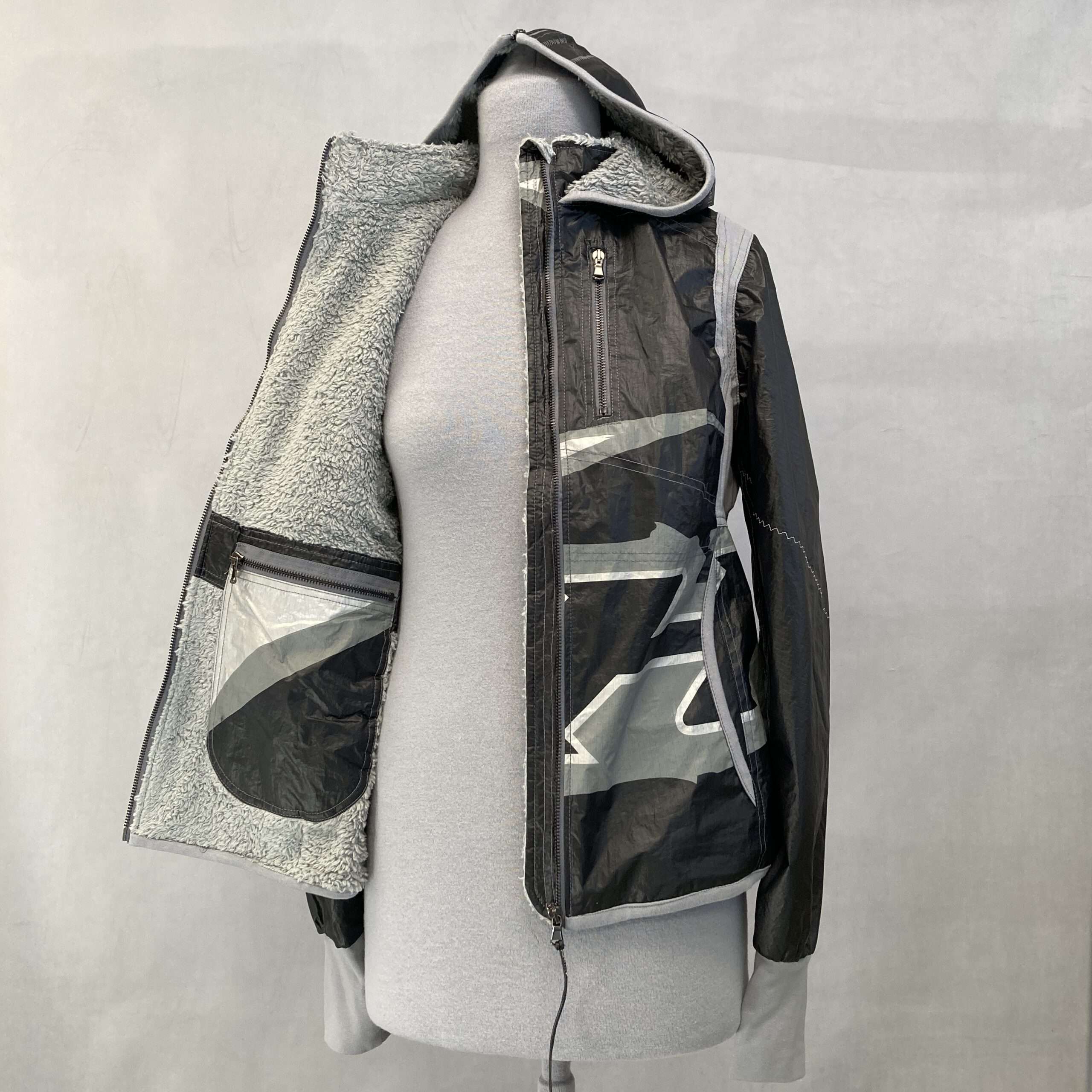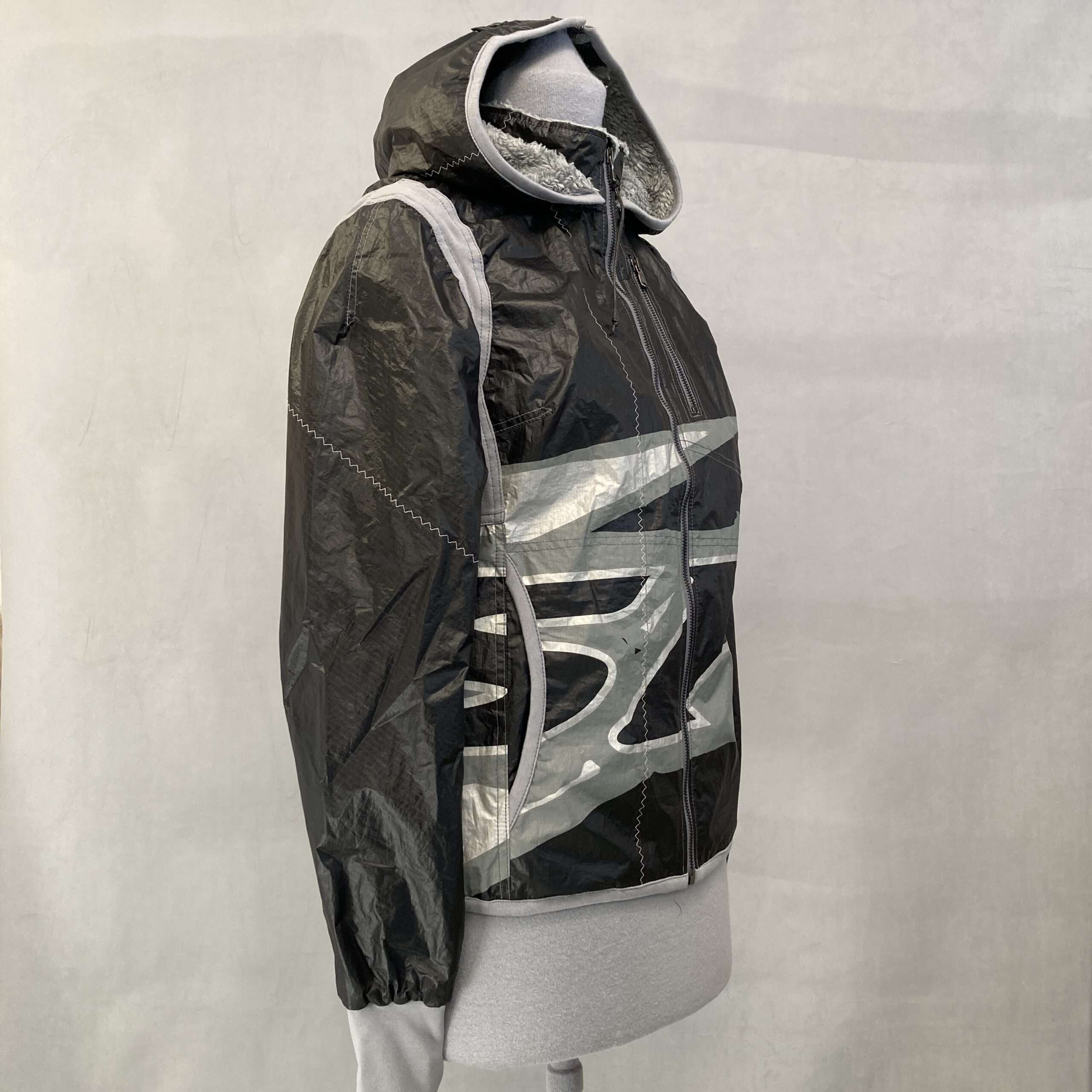 Eine Upcycling-Jacke, die gleich zweimal Mรผll vermeidet. Durch Verarbeitung gebrauchter Kites und unseren Zero-Waste-Anspruch; denn auch ihr Verschnitt wird in unseren anderen Produkte weiterverwendet.