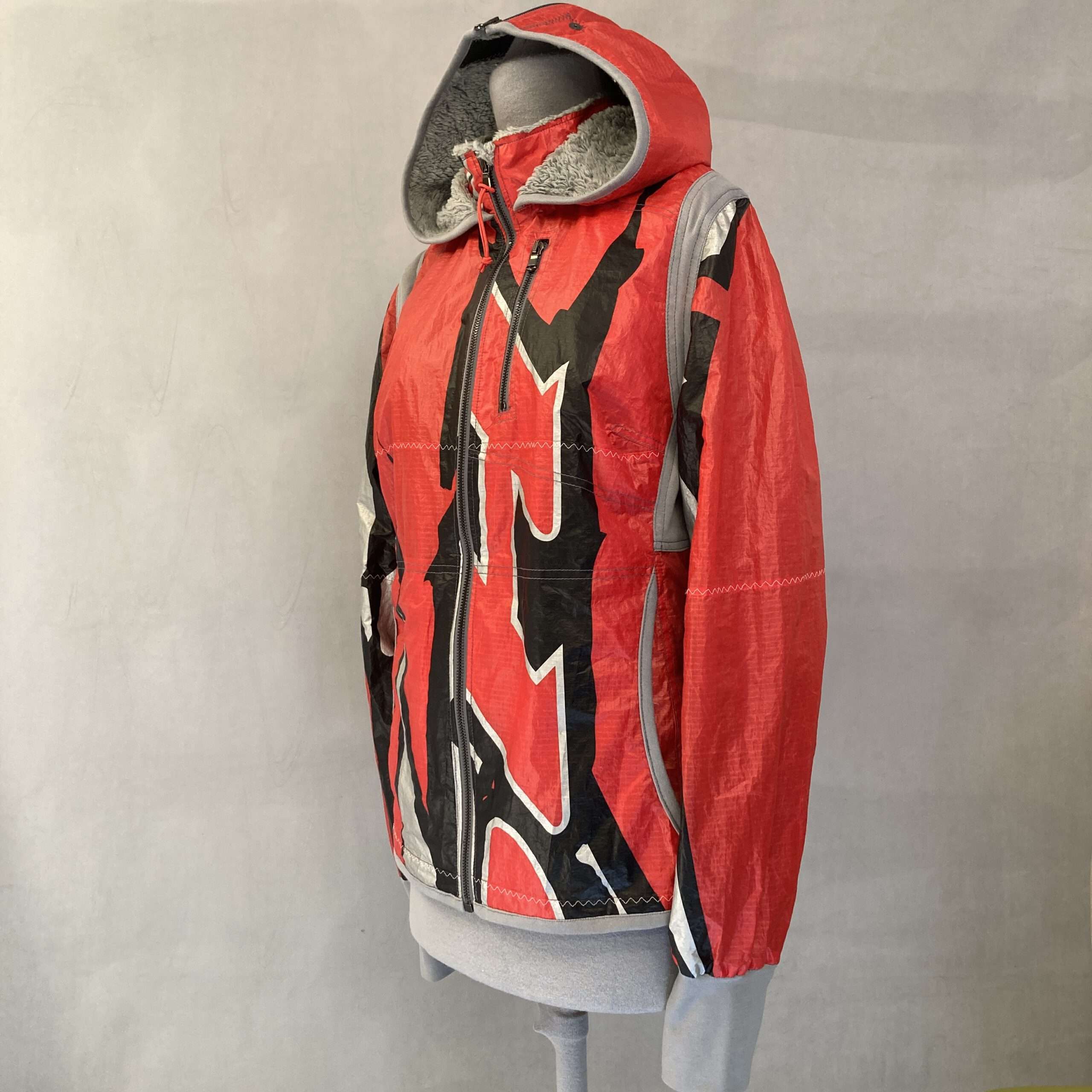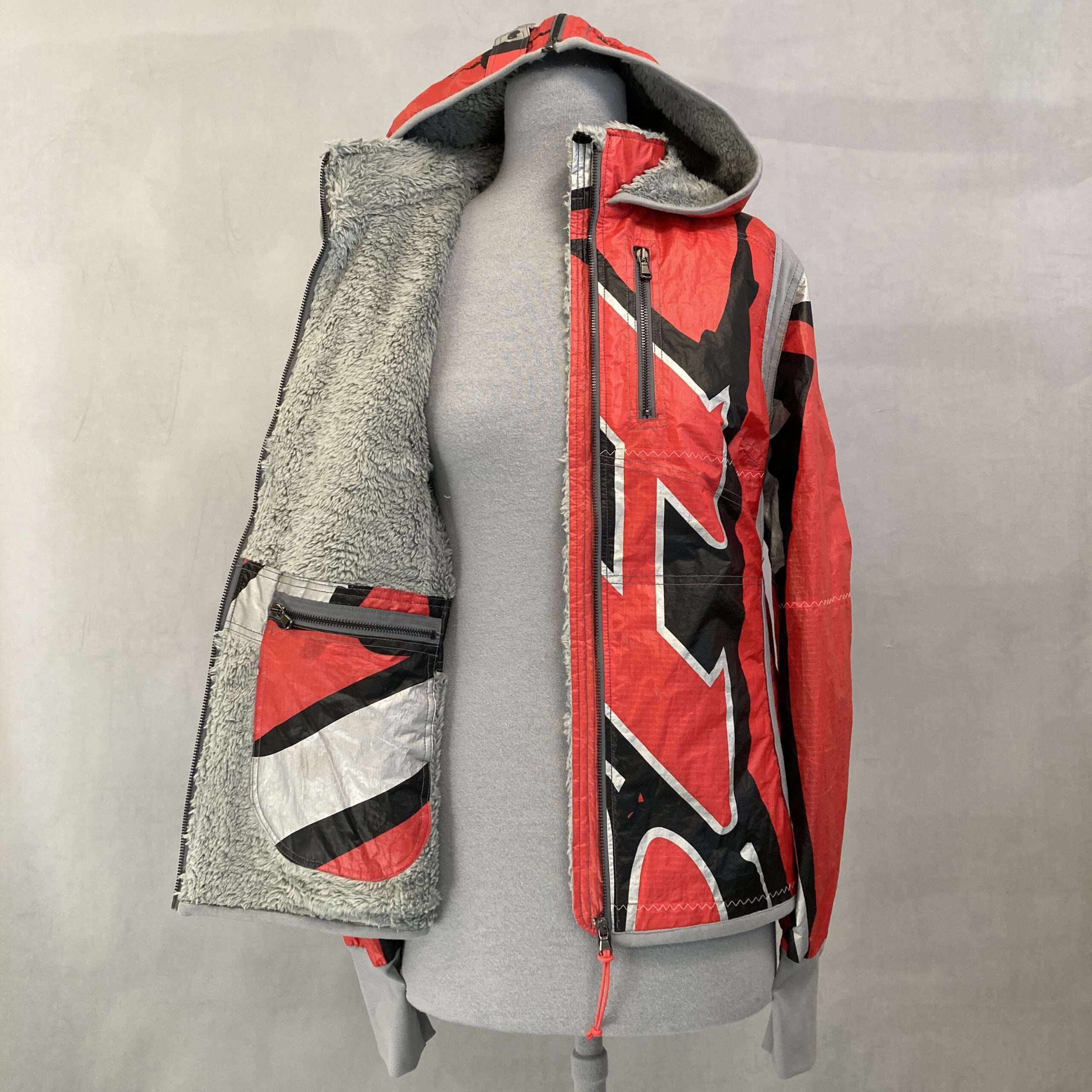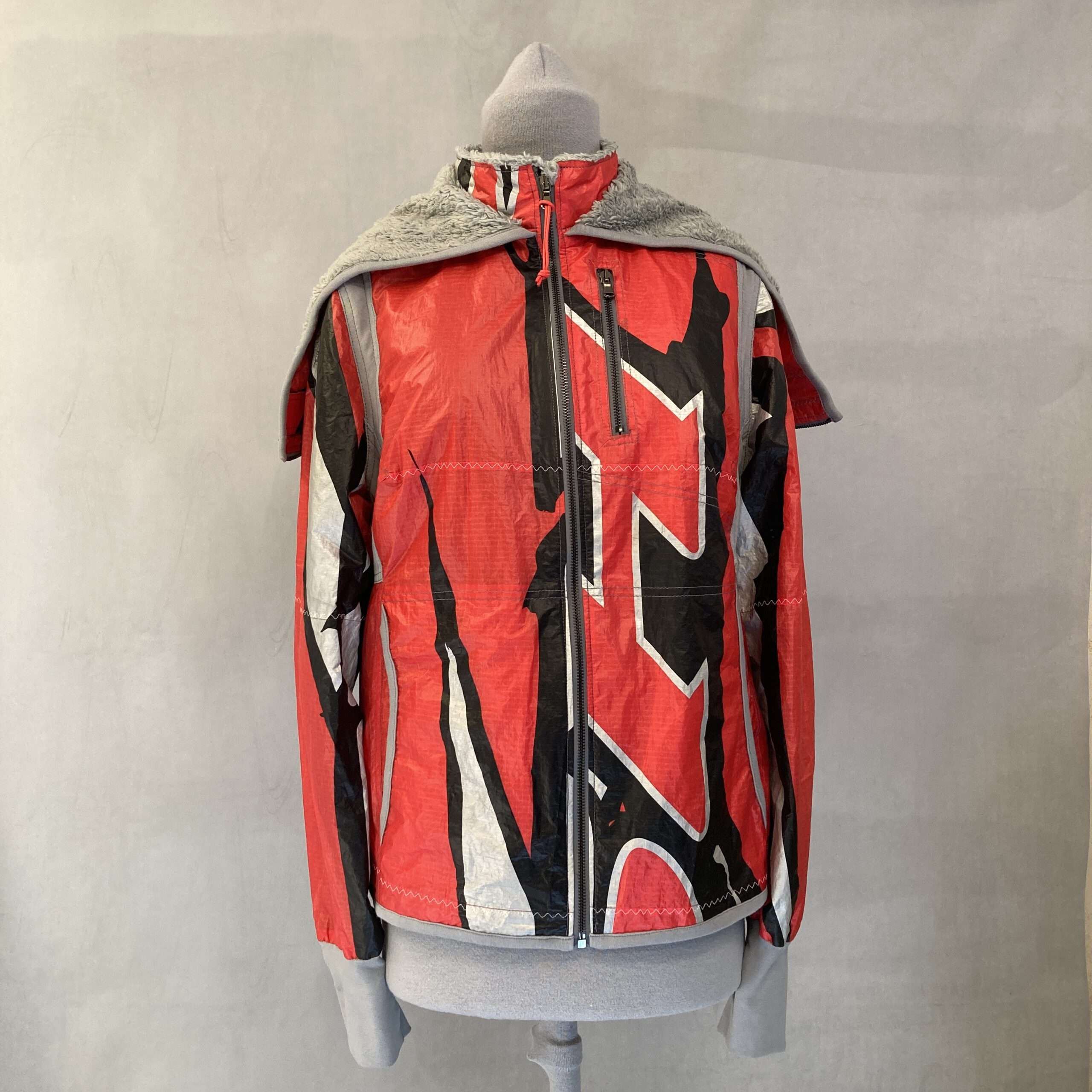 Eine Upcycling-Jacke, die gleich zweimal Mรผll vermeidet. Durch Verarbeitung gebrauchter Kites und unseren Zero-Waste-Anspruch; denn auch ihr Verschnitt wird in unseren anderen Produkte weiterverwendet.
