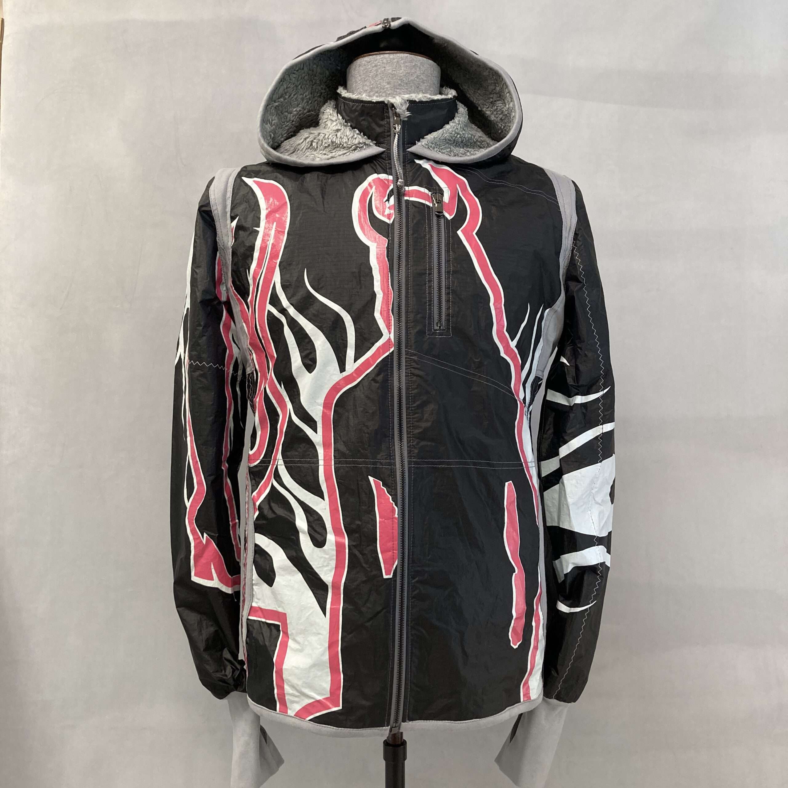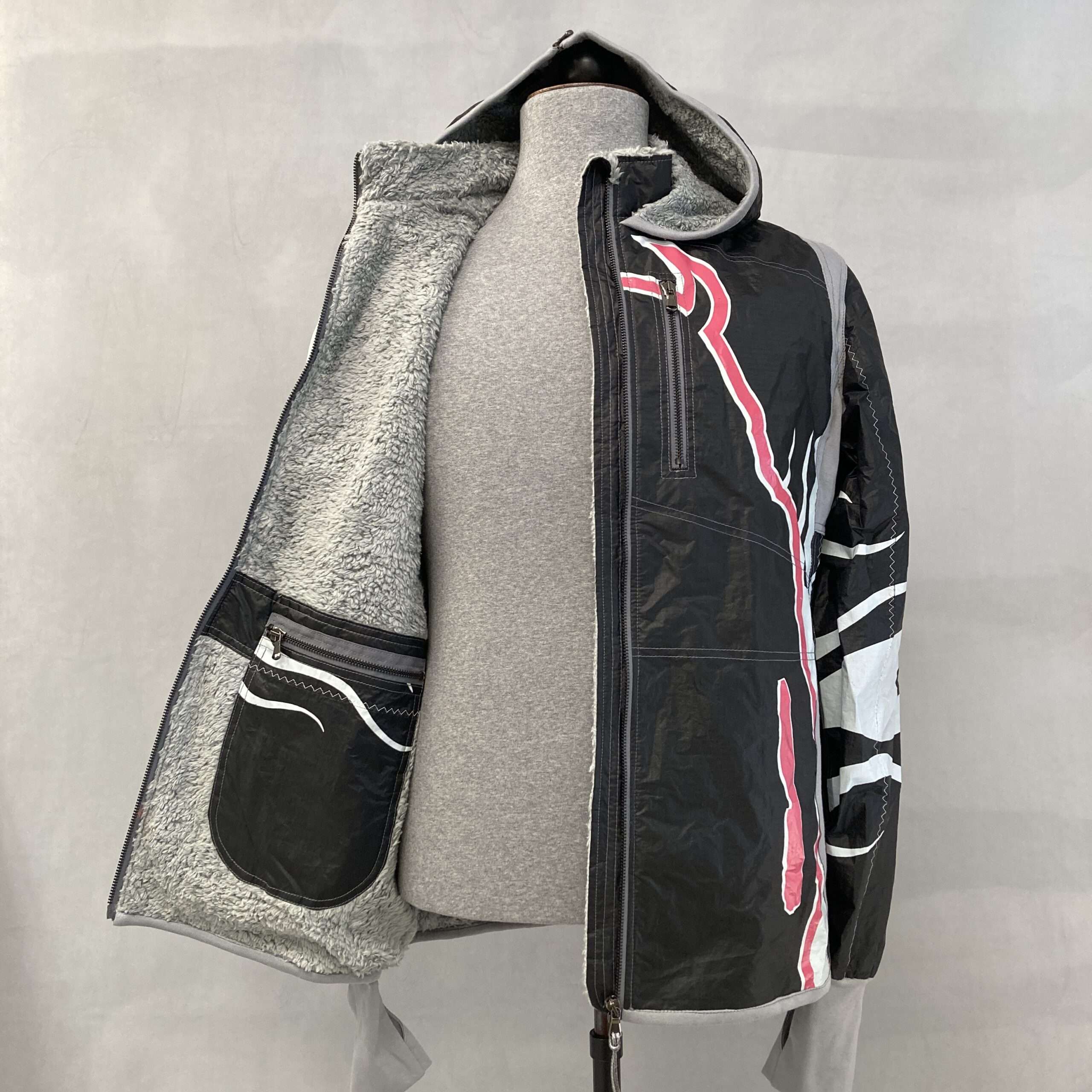 Eine Upcycling-Jacke, die gleich zweimal Mรผll vermeidet. Durch Verarbeitung gebrauchter Kites und unseren Zero-Waste-Anspruch; denn auch ihr Verschnitt wird in unseren anderen Produkte weiterverwendet.