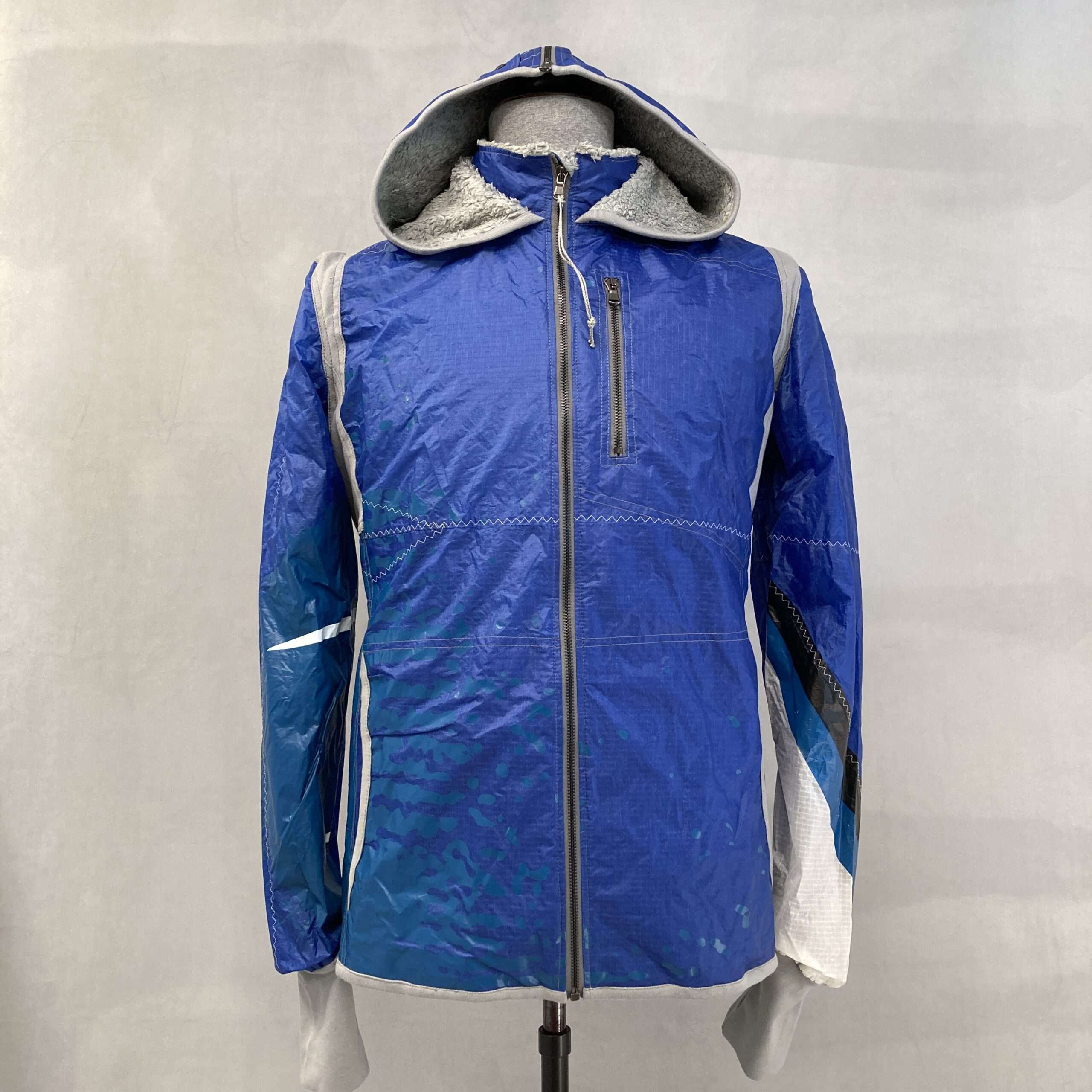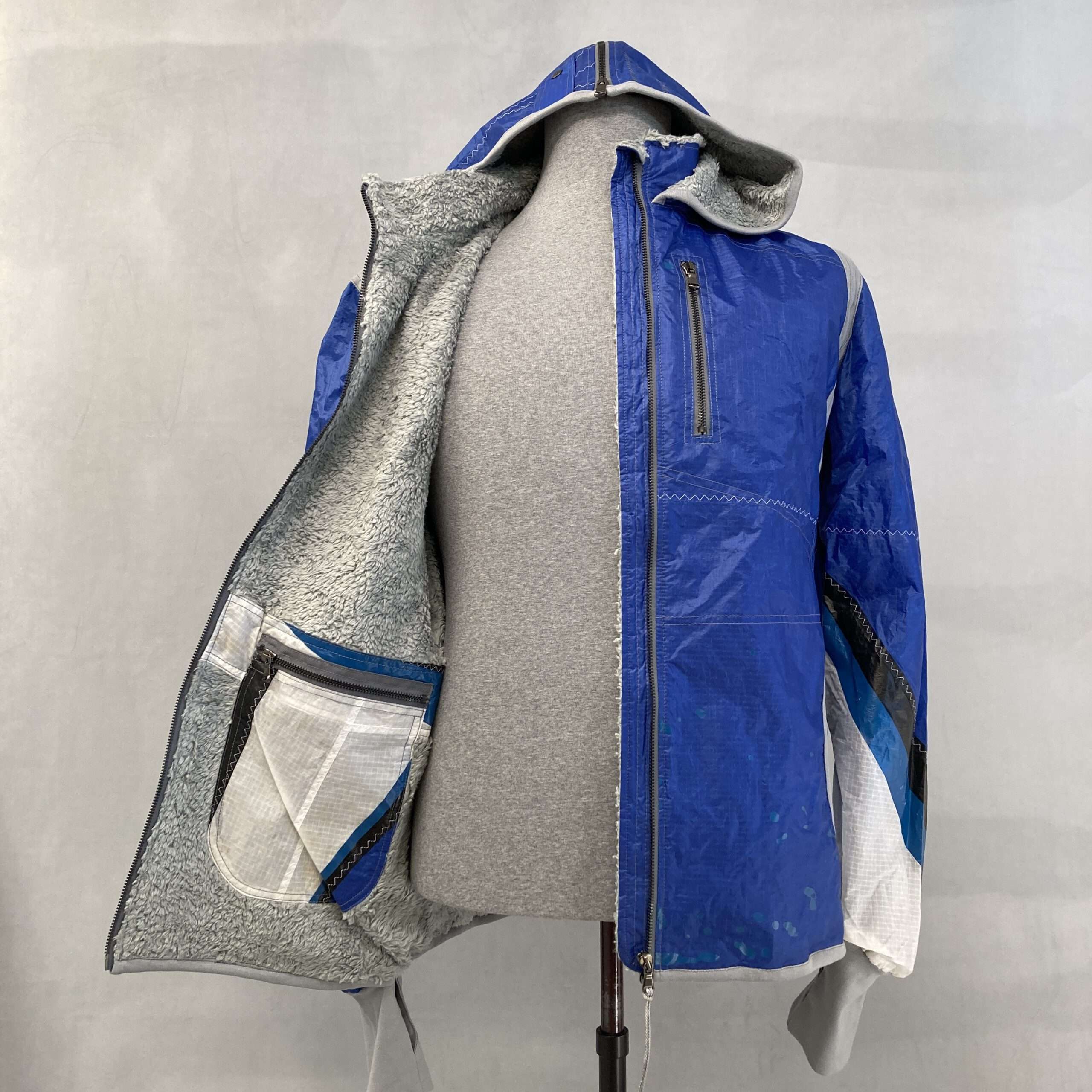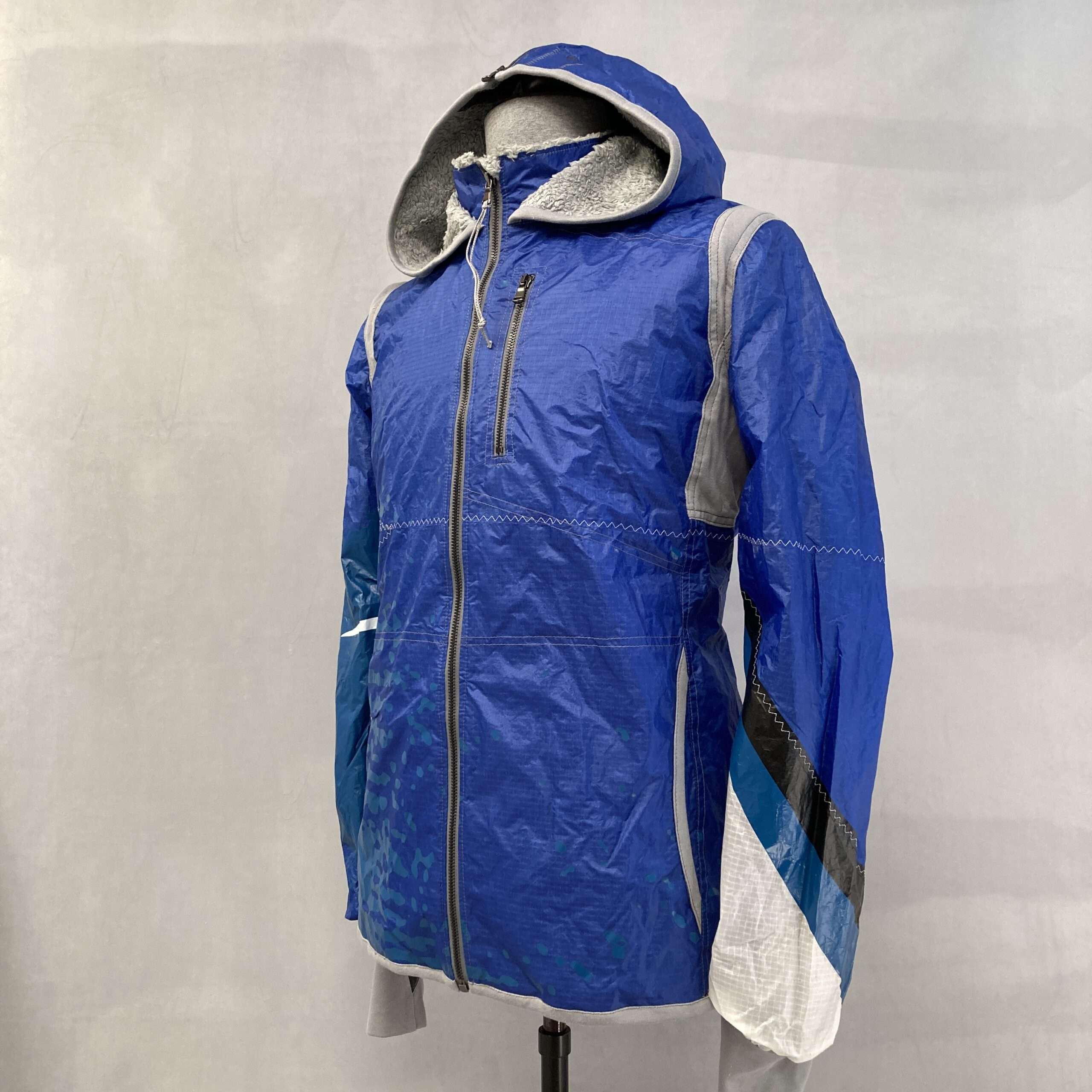 Eine Upcycling-Jacke, die gleich zweimal Mรผll vermeidet. Durch Verarbeitung gebrauchter Kites und unseren Zero-Waste-Anspruch; denn auch ihr Verschnitt wird in unseren anderen Produkte weiterverwendet.