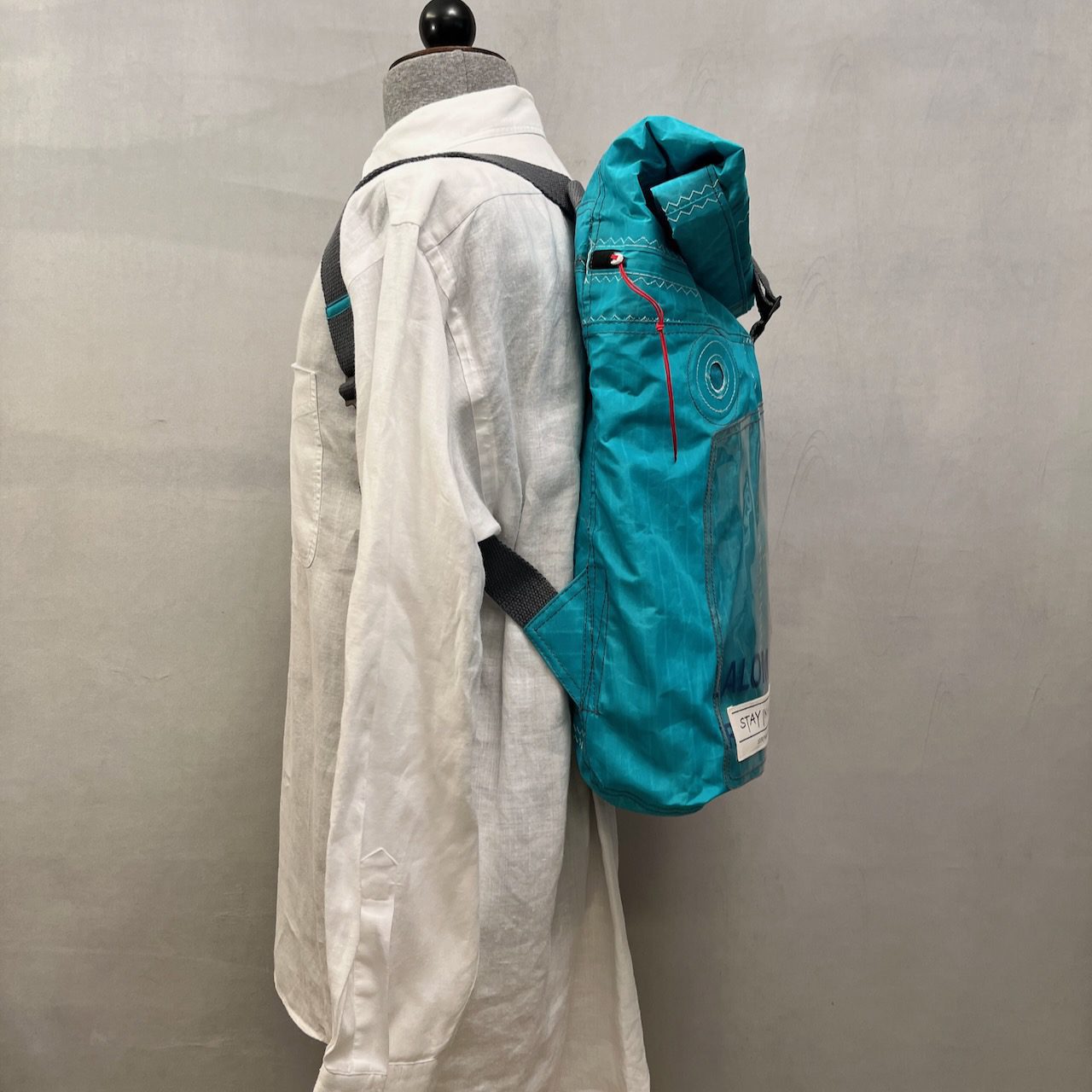 Sehr leichter, individueller und extrem gerรคumiger Rucksack. Schultergurte stufenlos einstellbar. Bequeme Handschlaufe. Auรen groรes Front-Fach mit Reiรverschluss. Am Rรผcken ein kleineres Reiรverschluss-Fach. Zusรคtzliche Rรผcken-Versteifung durch upgecycelte Bootssegel. Im Inneren ein Dreier-Steckfach sowie Dreiteilung des Hauptfachs. Ein Metall-Hook verschlieรt das Rolltop.