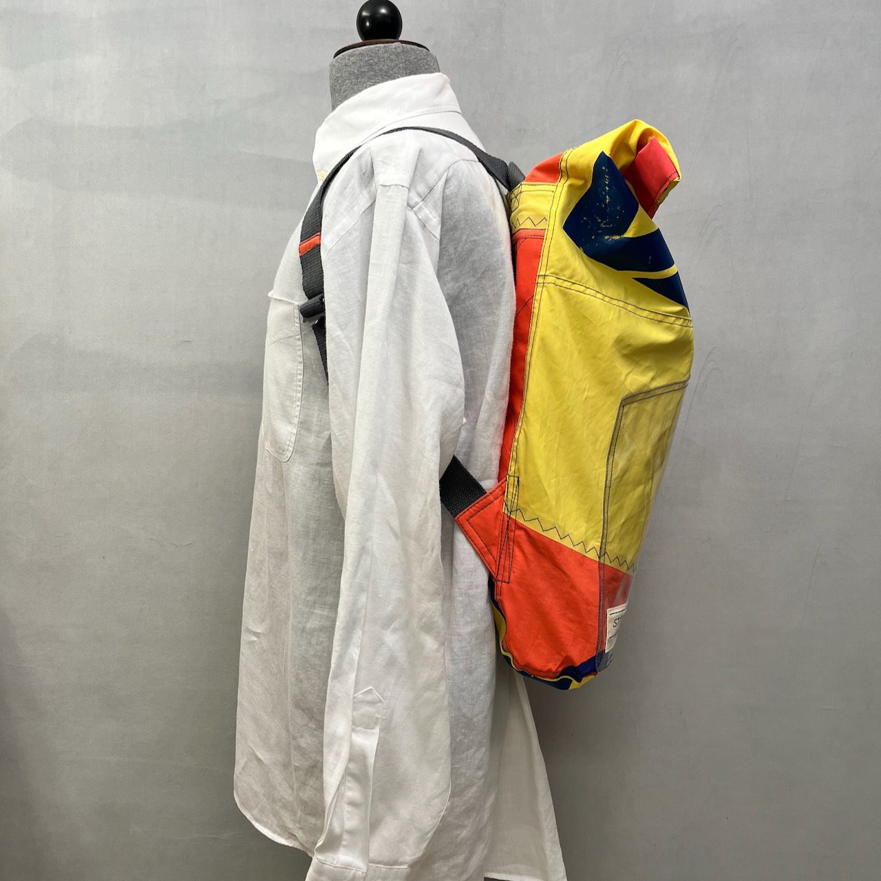 Sehr leichter, individueller und extrem gerรคumiger Rucksack. Schultergurte stufenlos einstellbar. Bequeme Handschlaufe. Auรen groรes Front-Fach mit Reiรverschluss. Am Rรผcken ein kleineres Reiรverschluss-Fach. Zusรคtzliche Rรผcken-Versteifung durch upgecycelte Bootssegel. Im Inneren ein Dreier-Steckfach sowie Dreiteilung des Hauptfachs. Ein Metall-Hook verschlieรt das Rolltop.