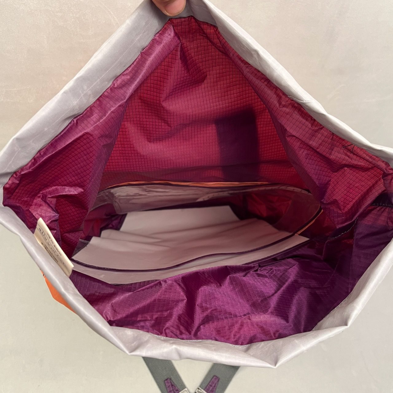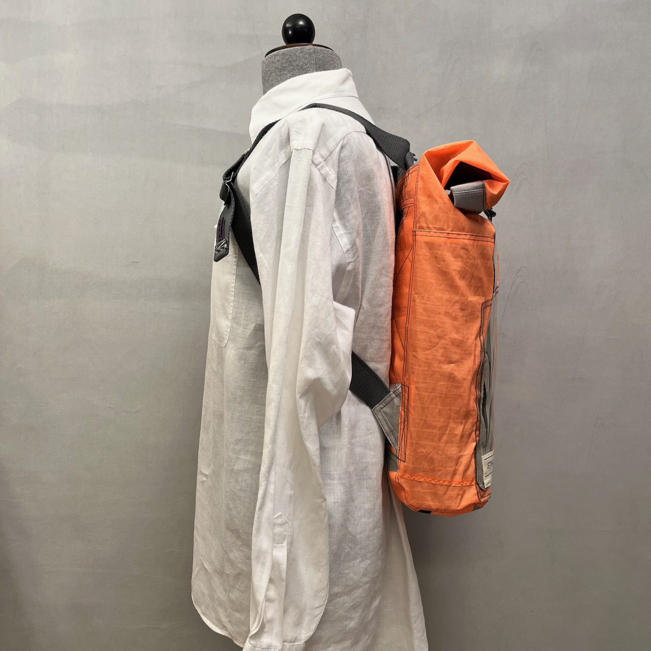 Sehr leichter, individueller und extrem gerรคumiger Rucksack. Schultergurte stufenlos einstellbar. Bequeme Handschlaufe. Auรen groรes Front-Fach mit Reiรverschluss. Am Rรผcken ein kleineres Reiรverschluss-Fach. Zusรคtzliche Rรผcken-Versteifung durch upgecycelte Bootssegel. Im Inneren ein Dreier-Steckfach sowie Dreiteilung des Hauptfachs. Ein Metall-Hook verschlieรt das Rolltop.