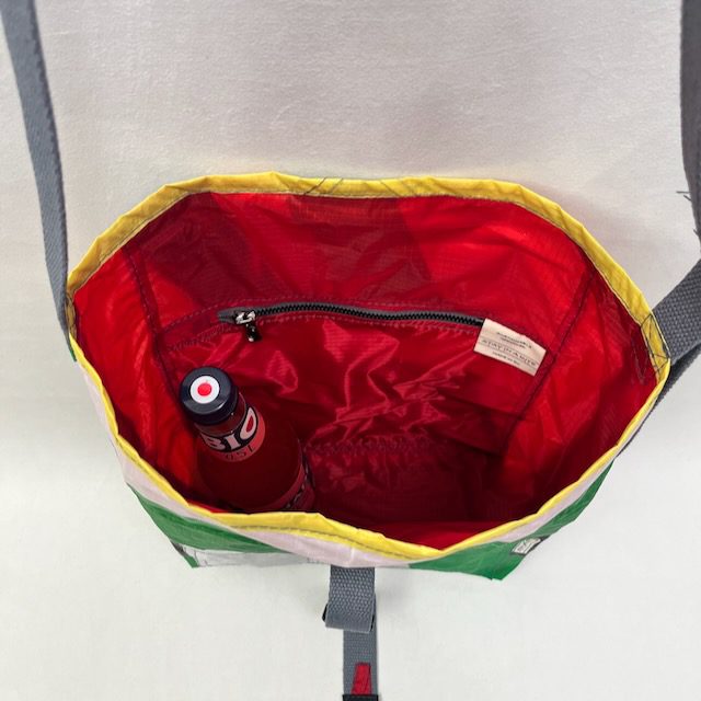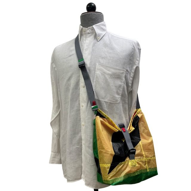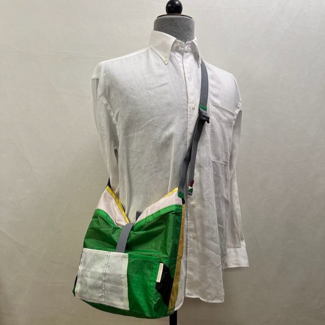 Manuell hergestellte, umweltfreundliche Upcycling Tasche aus gebrauchten Kite-Surf-Segeln. Diese nachhaltige Umhรคngetasche ist auรŸergewรถhnlich leicht und in Deinem Alltag universell einzusetzen.
