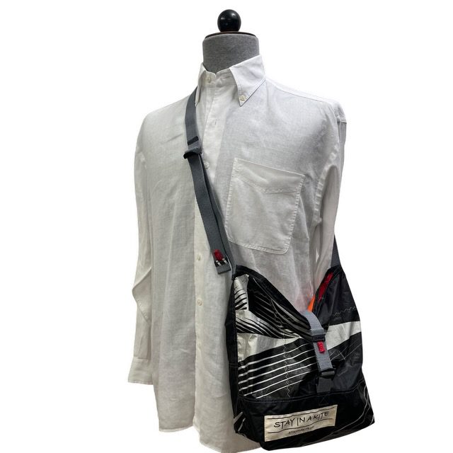 Manuell hergestellte, umweltfreundliche Upcycling Tasche aus gebrauchten Kite-Surf-Segeln. Diese nachhaltige Umhรคngetasche ist auรergewรถhnlich leicht und in Deinem Alltag universell einzusetzen.