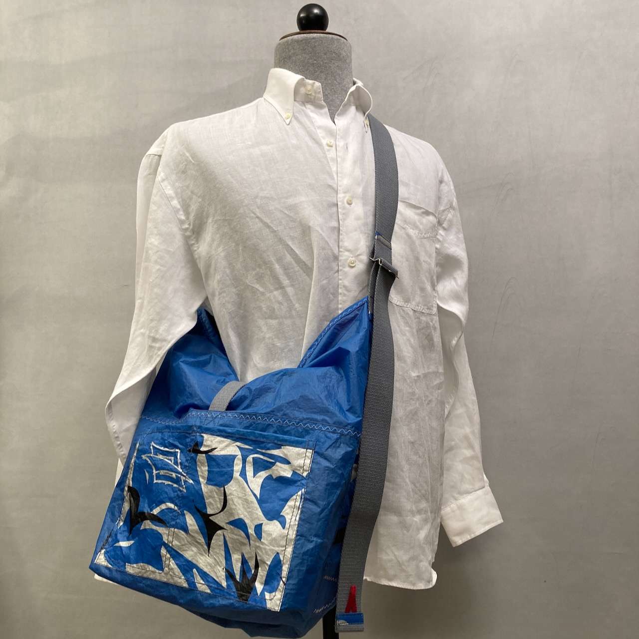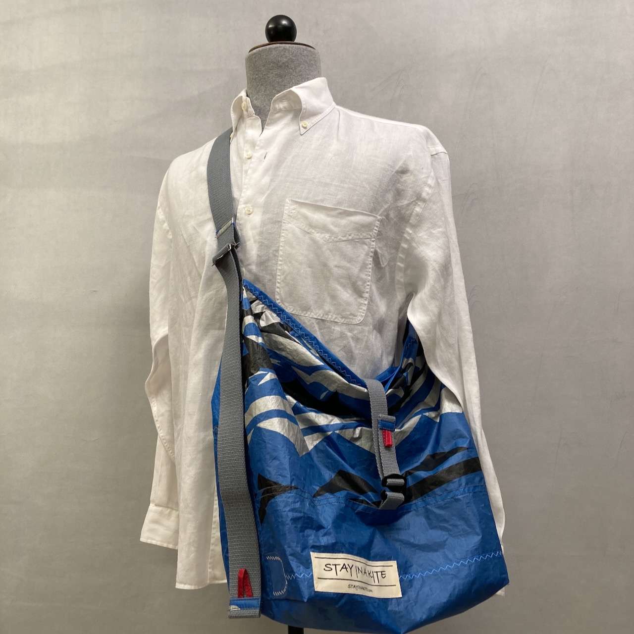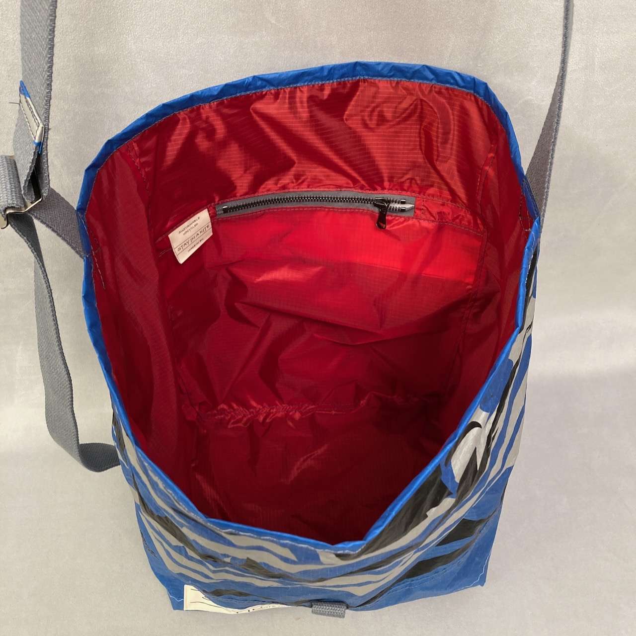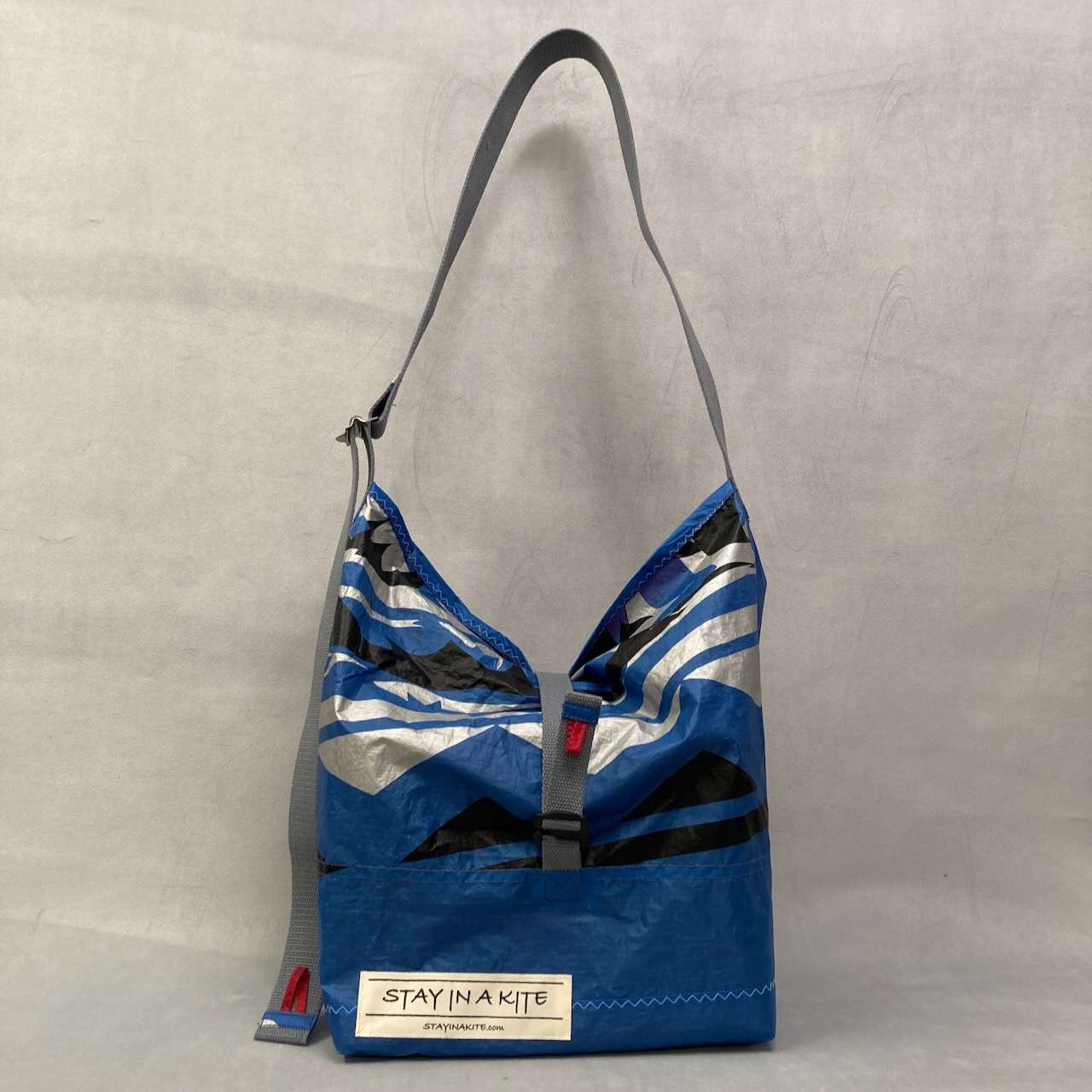 Umweltfreundliche und nachhaltige Upcycling Tasche aus recyceltem Material. Jede dieser extrem leichten, handgefertigten Handtaschen wurde aus gebrauchten Kite-Surf-Segeln hergestellt.ย