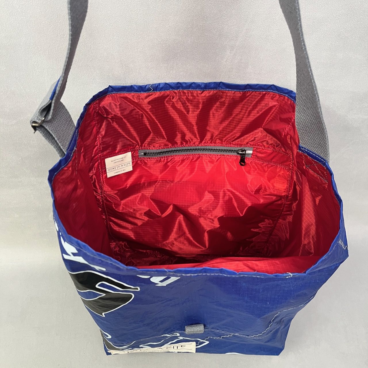 Umweltfreundliche und nachhaltige Upcycling Tasche aus recyceltem Material. Jede dieser extrem leichten, handgefertigten Handtaschen wurde aus gebrauchten Kite-Surf-Segeln hergestellt.ย
