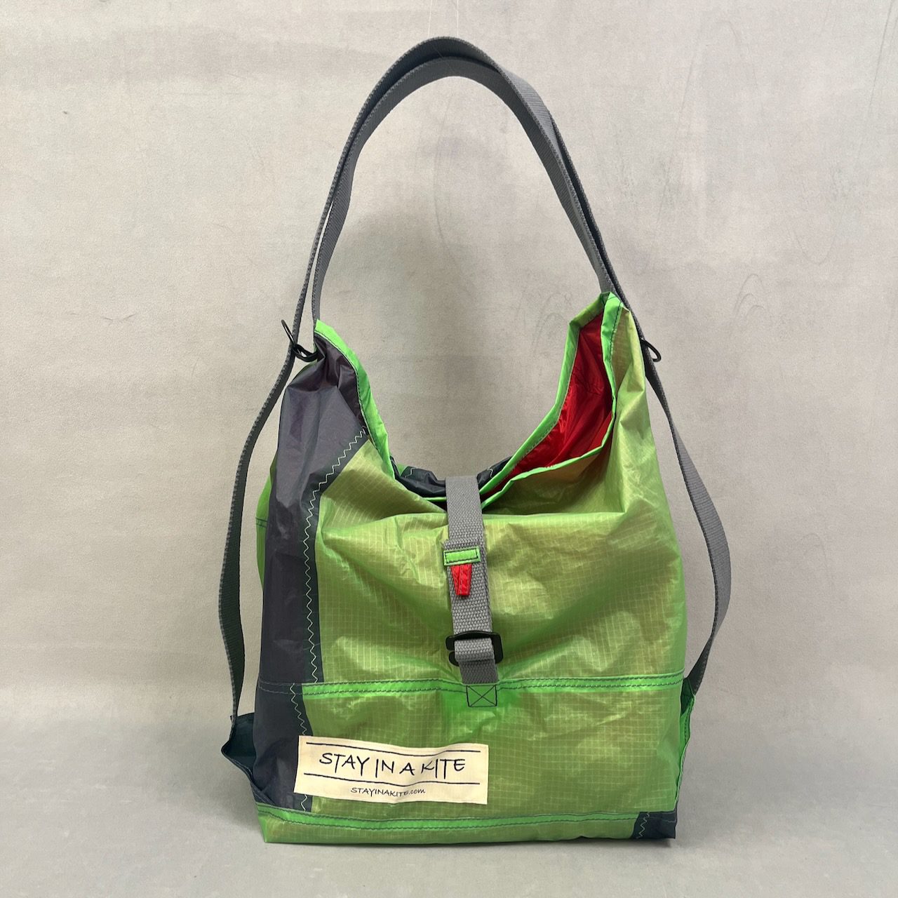 Jede dieser Segeltuchtaschen wurde aus gebrauchten Kite-Surf-Segeln individuell handgefertigt.ย