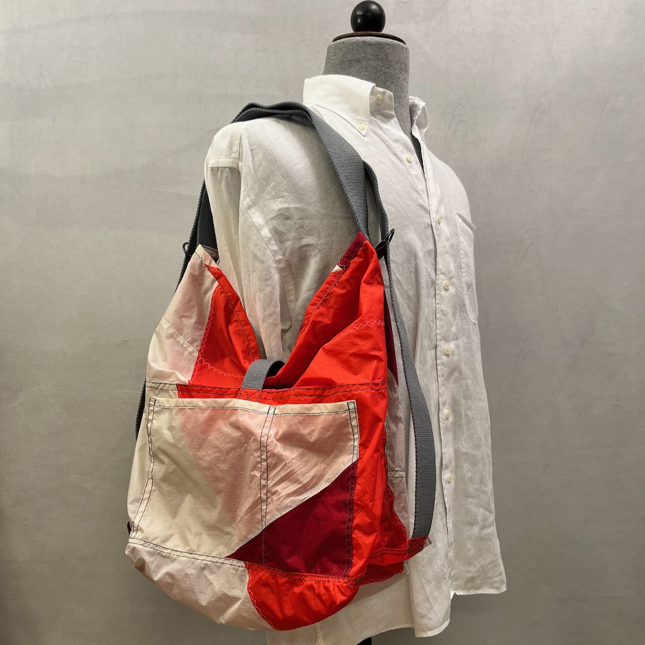 Jede dieser Segeltuchtaschen wurde aus gebrauchten Kite-Surf-Segeln individuell handgefertigt.ย