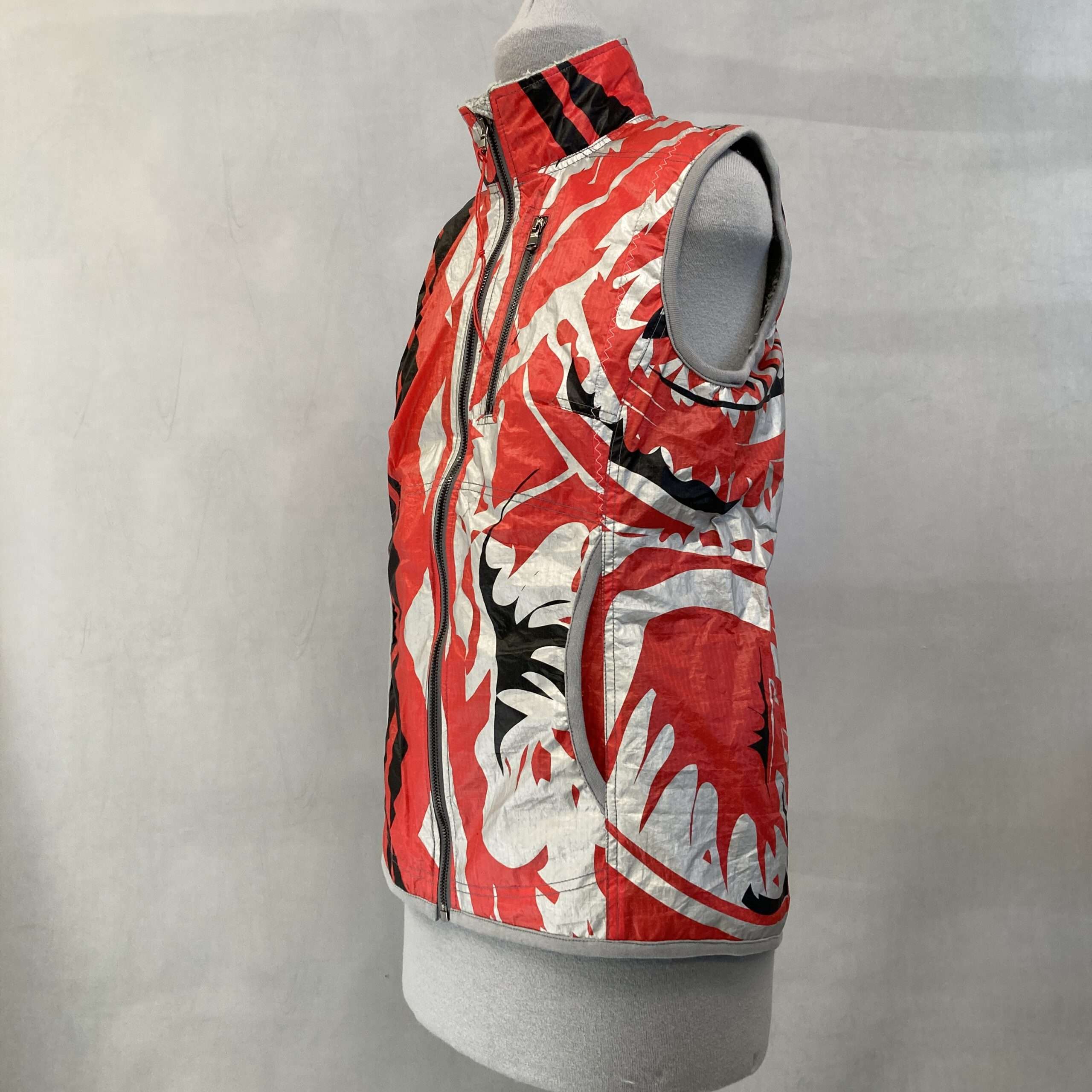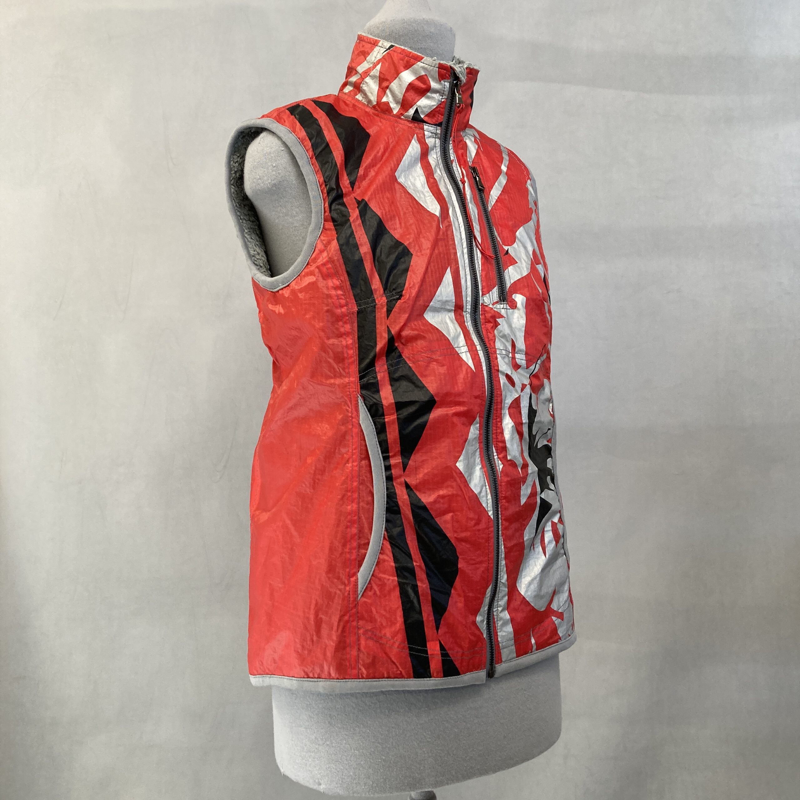 Eine Upcycling-Weste, die gleich zweimal Mรผll vermeidet: Wir verarbeiten gebrauchte Kites und unser Zero-Waste-Anspruch lรคsst uns ihren Verschnitt in unseren anderen Produkten weiter verwenden.