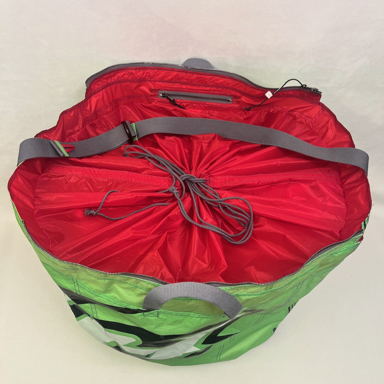 Dieser umweltfreundliche Weekender ist sehr groร und gerรคumig mit der Mรถglichkeit, das Hauptfach zusรคtzlich zu erweitern. Zum Verstauen kannst Du sie kompakt und klein zusammenrollen, so dass sie immer gut unterzubringen ist. Verschlieรen lรคsst sich diese Recyclingtasche mit einem langen Reiรverschluss oder den Kordelzug der Facherweiterung dieses Topladers, der aus der Damenmode/ Herrenmode nicht mehr wegzudenken ist. Ein zusรคtzliches groรes Innenfach mit Reiรverschluss verwahrt Deine Wertgegenstรคnde.